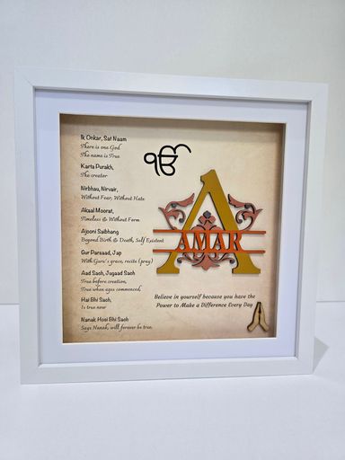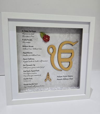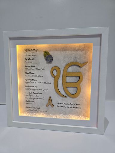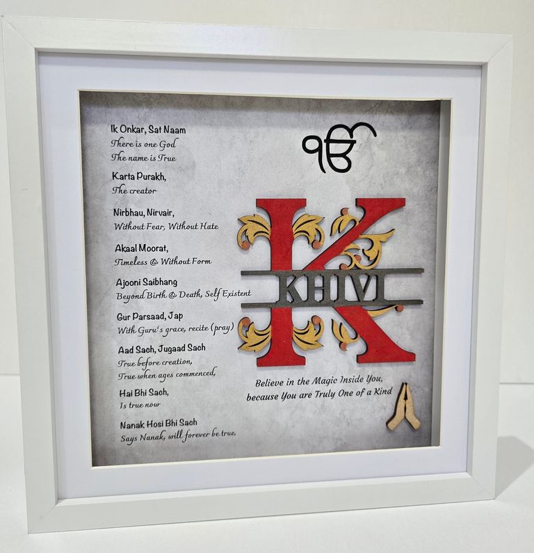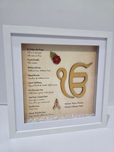 The Mool Mantar is the sacred opening vrese of Sikh scripture and the spritiual foundation of Sikh belief. Its words reflect eternal truth, oneness and the presence of the divine - guiding the soul towards clarity, humility and inner strenght.