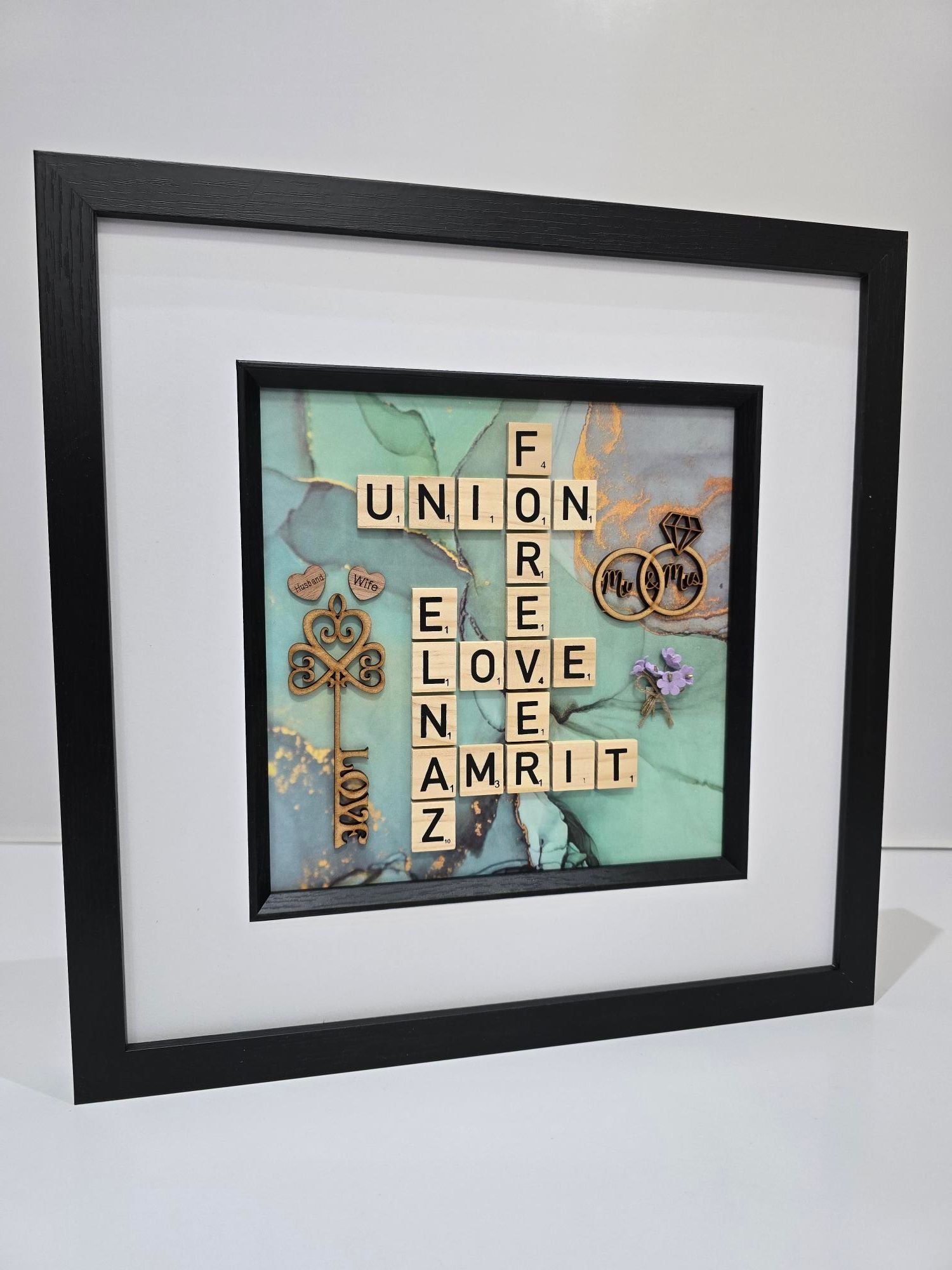 Each frame is thoughtfully handcrafted, bringing together names, words & meaningful details to create a piece with