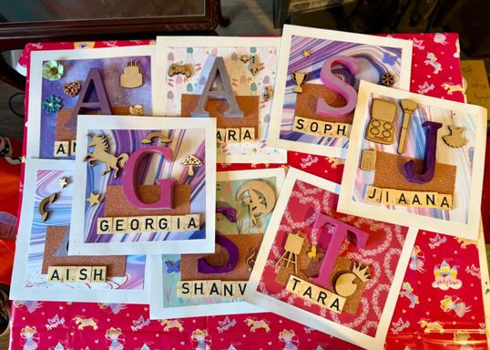 Each child is guided to create their own personalised name frame, encouraged to express their individuality - leaving with a keepsake they’ll display & treasure.